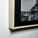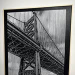 Single-layer stencil of the Ben Franklin Bridge, sprayed in white on black canvas to create sharp contrast and depth. The piece captures the bridge’s bold symmetry and the feeling of crossing into the city — a familiar ritual for anyone who calls Philly home. Framed in custom-built natural poplar wood, leaving the raw grain visible to complement the clean, minimal composition.