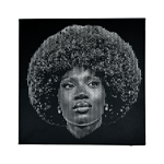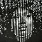 Single-layer stencil portrait of the rising icon, painted in white on black for a bold, stripped-down contrast. No frame — just pure attitude and rhythm captured raw on canvas.
